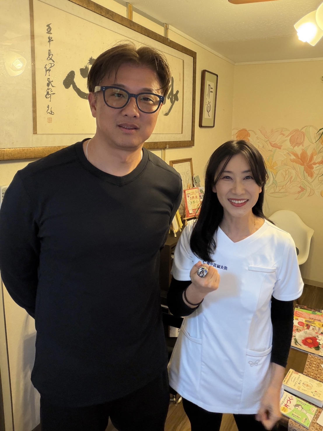 今回はお願いして、ワールドシリーズ・チャンピオンリングをご持参いただきました。2025年末を飾るビッグイベントに仁愛のテンションもマックスです。