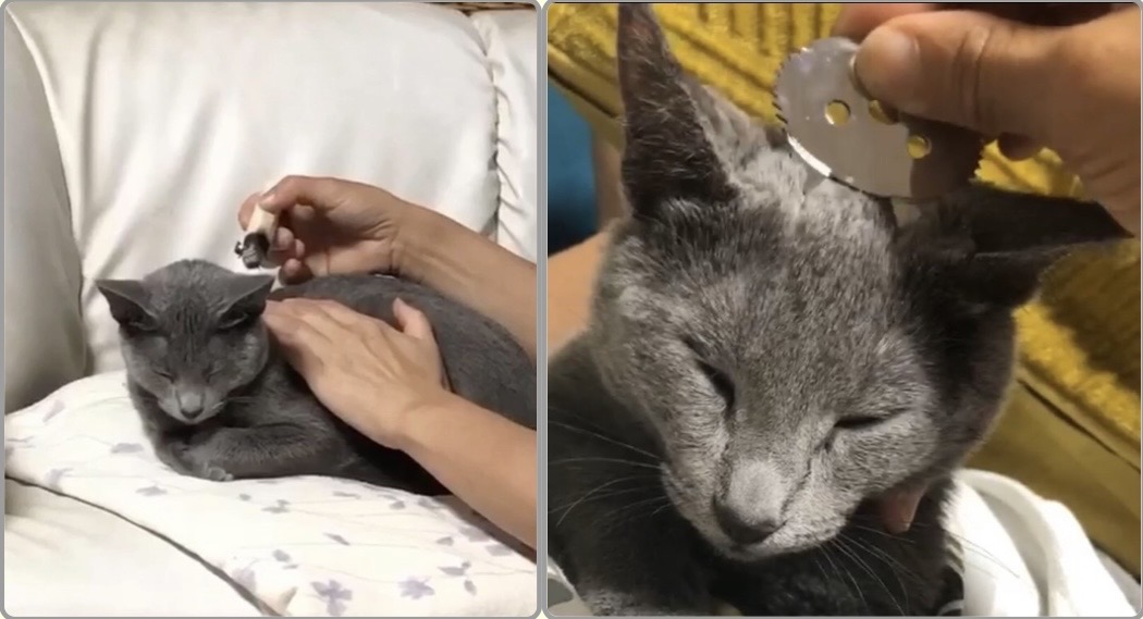 オンライン治療といって施灸や接触鍼(上はネコ型)やマッサージ方法を指導いたします。